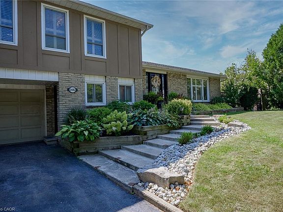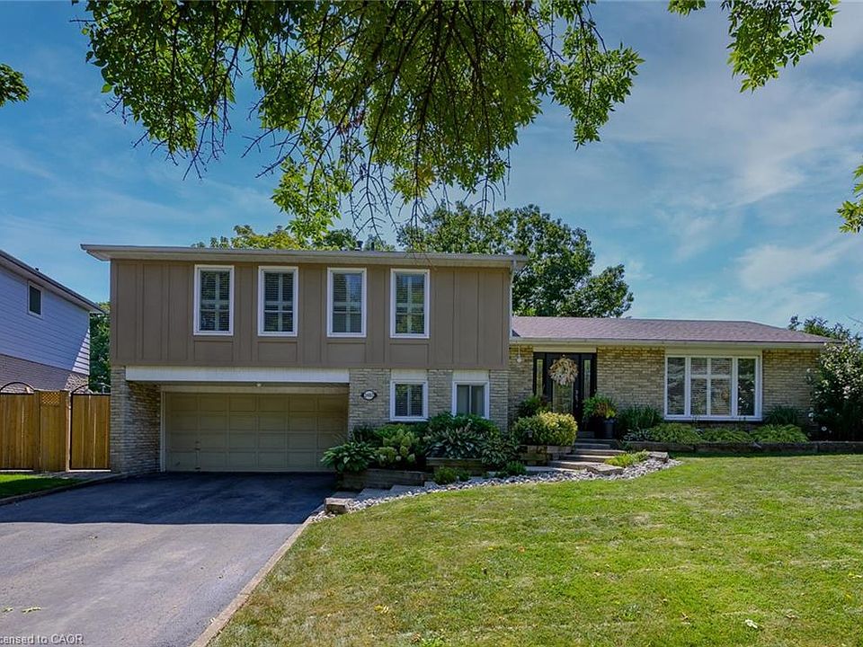 West Oakville Charm with Modern Updates on a Spacious Pie-Shaped Lot. Nestled in the highly desirable neighborhood of West Oakville, this beautifully updated detached 4 level sidesplit offers both style and function. The home boasts undeniable curb appeal with its lush, manicured landscaping leading up to the welcoming front door. Inside, hardwood floors span the main level, which features a bright and airy living room with a large front window that fills the space with natural light. The open-plan design flows seamlessly into the dining area and the modern kitchen, which showcases stainless steel appliances, a gas stove top, wall oven, and butcher block countertops. Pristine white cabinetry and a peninsula with seating overlook the cozy family room, perfect for gatherings and entertaining. On the second level, the primary bedroom offers dual closets and a private ensuite bath, providing a serene retreat. Three additional generously sized bedrooms and a full bathroom complete this level. The ground level offers an inviting family room with a charming brick-surround gas fireplace and sliding glass doors that lead to your very own backyard oasis. This outdoor space is an entertainers dream, with a large, partially covered patio, a cabana, and a separate deck leading to an above-ground pool, all within a private, fenced yard. Inside, the ground level is completed by a convenient mudroom and powder room, adding to the home's practicality. A finished basement offers even more living space, with a recreation room and bar area, perfect for game nights or additional family space. Located just steps away from schools, scenic parks, and nature trails, this home also provides easy access to highways, and is within walking distance of the lake. This property offers the perfect blend of suburban tranquility and modern convenience.