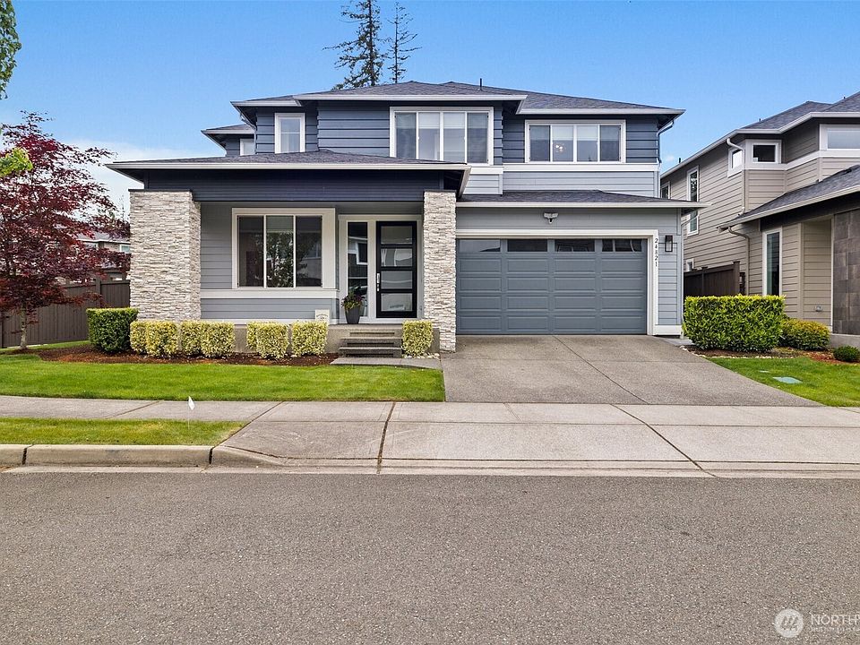 Discover the perfect blend of modern luxury and thoughtful design in this stunning MainVue home, perfectly situated on a desirable corner lot. The main floor offers 1 bedroom with a full bath, ideal for guests or multi-generational living. An open concept layout connects the spacious living area, sleek kitchen, and dining space. Step outside to a covered patio, complete with a gas fireplace. Upstairs, you'll find a generous loft for additional living space, plus 3 bedrooms, each with their own designated bathrooms. The Primary Suite boasts an impressive large footprint designed for ultimate comfort featuring dual walk-in closets and spa like 5 piece bath.