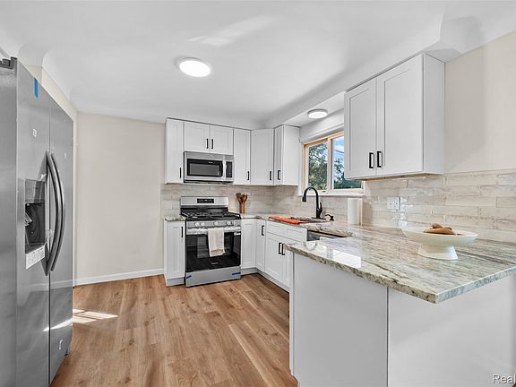 The kitchen boasts new cabinets, granite counters, flooring and all appliances. The kitchen open floor plan leads into the dining area and brightly lit by natural light sitting room.