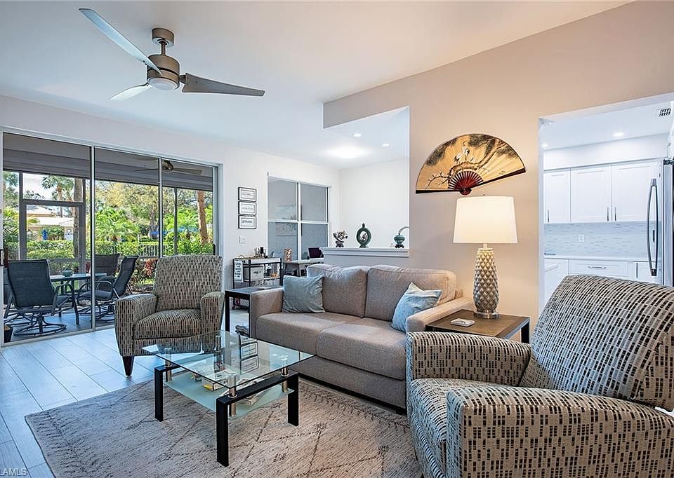 Do not miss this opportunity to live in a beautifully and newly renovated first floor unit in Lakemont Cove. The long list of improvements includes new Trane air-conditioning system, water heater, porcelain wood plank flooring, custom window coverings, fully remodeled kitchen and baths, and newly painted in neutral colors. Every detail in this home has been brought up to the highest standards. Lakemont Cove is close to the main gate of Pelican Landing and is walking distance to the community center, pickleball, bocce, shopping and a variety of restaurants. Pelican Landing amenities include a community center with planned social activities, a fitness center, 12 Har-Tru tennis courts, six pickleball courts, a canoe and kayak park, a sailing center with boats, a marina with boat slips, and a 34-acre gulf beach park. A Golf and/or Social memberships may be available at The Nest, with 2 Tom Fazio designed golf courses. Pelican Landing is less than a 30 minute drive to SWF International Airport.