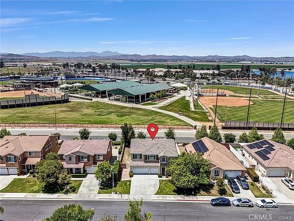 This upgraded open floor plan home has 5 bedrooms and 3 bathrooms with a 2.5 car garage. One bedroom on 1st floor with full bathroom. It features an open kitchen with granite and stainless steel counters. Along with the dining area and living room, the home also has a wet bar and breakfast nook. The large Master Bedroom with a spacious walk-in closet, double sinks, separate shower & tub is the highlight of this home. Has his and her walk-in closet. Located behind the Field of Dreams Ball Park in Perris. Close to freeway 215.