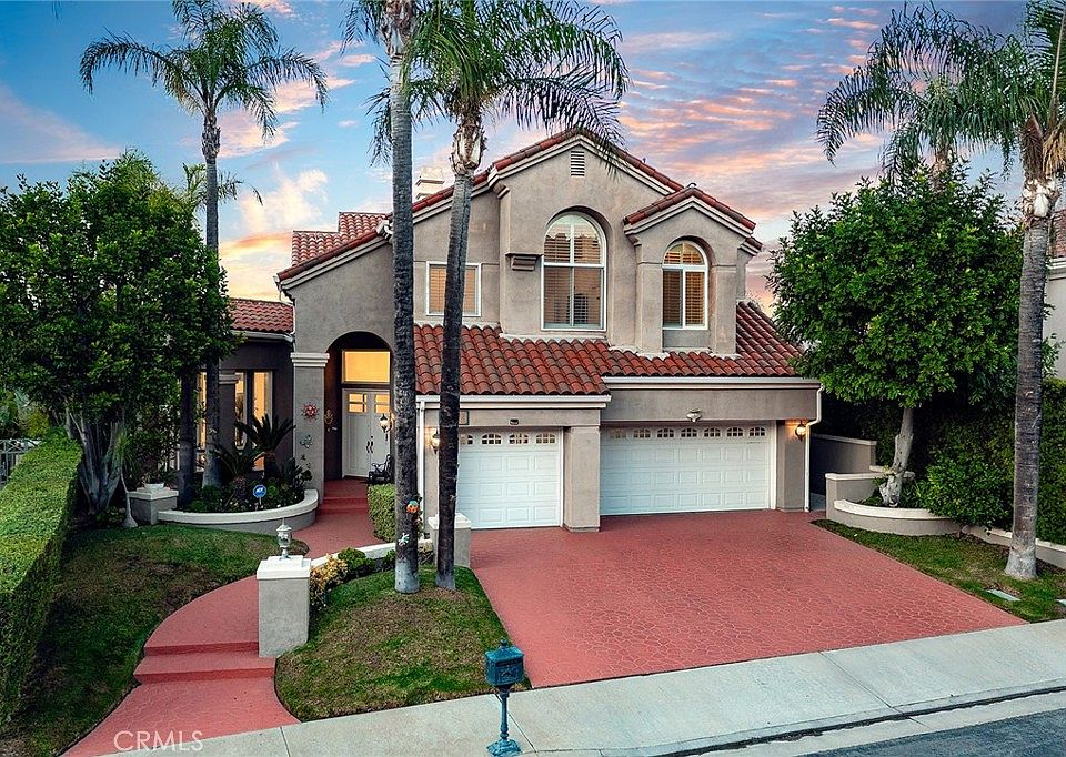 Discover this stunning guard-gated Mediterranean home with panoramic views, perfectly situated on a flat cul-de-sac in one of Calabasas’ most sought-after communities. Offering 5 spacious bedrooms and 4 baths, this residence blends comfort, elegance, and functionality in a bright, open floor plan. As you enter, soaring ceilings and abundant natural light create a grand first impression. The home features a formal living and dining room ideal for entertaining, while the chef’s kitchen—equipped with premium appliances—flows seamlessly into a warm, inviting family space with direct access to the backyard. The first floor includes a convenient bedroom - perfect for a home office, while upstairs you’ll find four additional bedrooms, including a luxurious primary suite with a cozy fireplace, spa-inspired ensuite, and generous closet space. Outdoors, enjoy breathtaking panoramic views of the San Fernando Valley. The backyard is designed for relaxation and entertaining, boasting a gated pool and spa, built-in BBQ, open patio, and lush landscaping. Additional highlights include a three-car garage with dual Tesla charging stations, ample storage, and meticulous curb appeal. This is more than a home—it’s a lifestyle. With access to top-rated schools, premier shopping, and the vibrant Calabasas community, this property offers the perfect blend of luxury and everyday convenience.