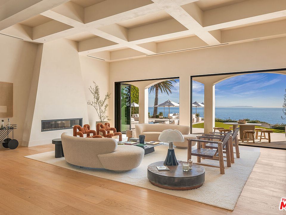 This 2022 estate, reimagined by renowned designer Malgosia Migdal and Fun-Bu Developers, is a single-level masterpiece offering 6,742 square feet of sophisticated living space on 1.55 private acres. Beyond the gates and the long driveway, find lush landscaping , a full tennis court and dual guest houses. Inside the four-bedroom main home, European plaster walls, French white oak floors and exquisite -designer lighting elevates every room. The living area features a box-beam ceiling, a fireplace and a wall of glass that opens to the outdoor entertaining area. The chef's kitchen boasts Miele appliances, leather-finished stone counters and custom rift-cut cabinetry. The primary suite stuns with a cove ceiling, ocean views, a fireplace, dual walk- in closets and a spa-like bath. Additional amenities include a theatre, a stunning pool and spa an outdoor kitchen and pizza oven. A lower-level fire pit and seating area is a serene-space to take in the panoramic ocean views amidst greenery.