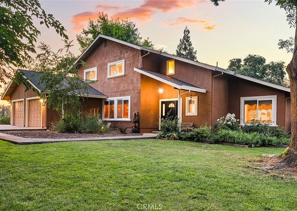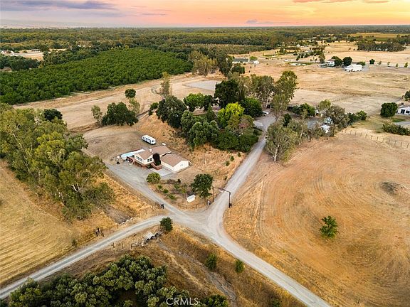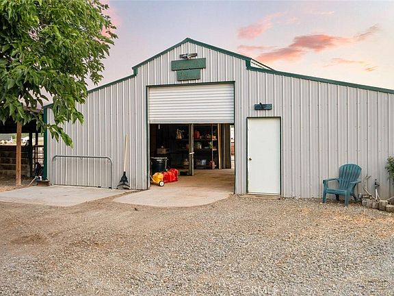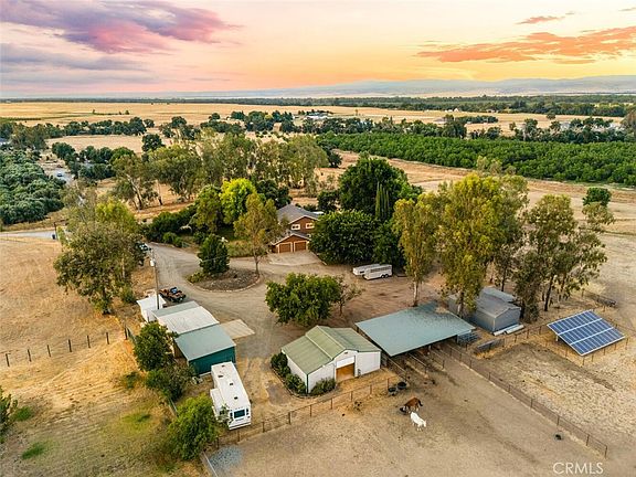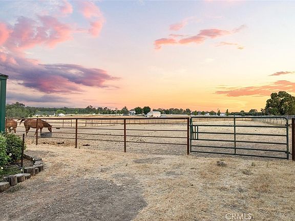 Tucked away at the top of a scenic hill, this one-of-a-kind 10-acre property offers the perfect blend of privacy, functionality, and breathtaking 360-degree views of surrounding mountains, orchards, and rolling hills. The main home is spacious and inviting, featuring 3 bedrooms, an office, a cozy den/library, and a light-filled living room with soaring ceilings and a wood-burning stove. You’ll also find a large laundry room and a separate family room for added flexibility. The kitchen is warm and well-appointed with hickory cabinets, granite countertops, travertine tile backsplash, and a huge walk-in pantry. The large primary bedroom includes a soaking tub, separate shower, and a newly added mini split A/C. Recent updates include new interior/exterior paint, a new well pump and tank, and a new septic system—all within the past 5 years. The home is fully electric and powered by owned solar, keeping energy costs low. Additional features include a whole house fan and a new above-ground pool. Designed with animals and sustainability in mind, the property includes a screened-in porch, 240x300 riding arena with roping chute, 24x36 barn with tack room, 28x50 hay barn, 4 horse stalls, chicken coop, pig pen, and garden beds with drip irrigation. The land is fully fenced and cross-fenced with automatic gated entries. A second residence—a 2-bed, 2-bath manufactured home—adds flexibility and income potential (estimated at $2,000/mo). It has its own well, septic, power, 2-car garage, and bonus room plumbed for a bathroom. Features include Trex decking, alder cabinets, newer A/C, natural gas, generator-ready hookup, and its own above-ground pool.This is a rare opportunity to own two homes, extensive equestrian and farming infrastructure, and a private slice of Northern California countryside.