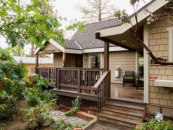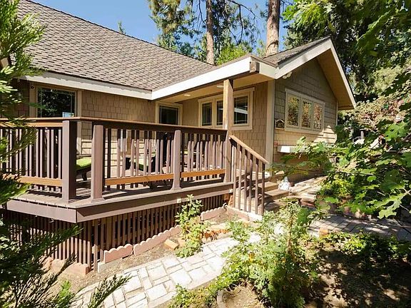 Welcome to your peaceful escape in the pines! This charming 2-bedroom, 2-bath cabin blends rustic warmth with modern comforts, making it an ideal easy living cabin. Bonus loft room is a sure conversation starter and fun for children. Inside, you'll find a bright, open interior with vaulted ceilings, exposed wood beams, and a spacious great room perfect for gatherings and cozy downtime. The living area flows seamlessly into a well-appointed kitchen and dining nook, combining true cabin charm with contemporary touches.Both bathrooms are thoughtfully updated with warm tile and modern fixtures, including a walk-in shower. Every detail, from the wood paneling to the nature inspired decor enhances the inviting mountain retreat ambiance. Cabin is sold turkey-furnished.Step outside to your private deck surrounded by towering pines and cedars, with lilacs and manzanitas foliage, perfect for morning coffee or evening sunsets. Convenient parking and easy access snow plow friendly maintained street. Home is on septic and has propane heat source. Also a fenced yard area. Whether you're seeking a weekend hideaway, or a full-time retreat, this easy living cabin offers the perfect balance of comfort, character, and nature.