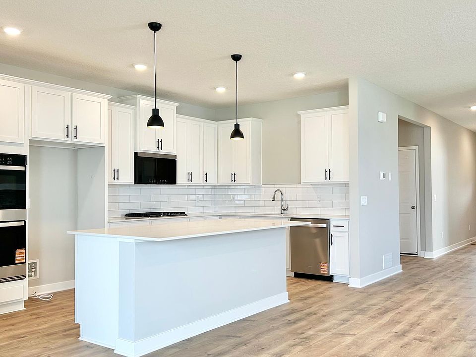 Corner walk-in pantryStainless appliancesWalkout homesiteDouble wall ovensQuartz countersVented drop-in gas cook-topStunning signature kitchen