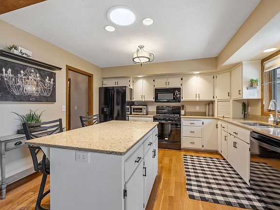 Welcome to this updated and meticulously cared for split-level home! This home was a former builder's home featuring cedar siding, brick accents, and Anderson windows. The main level features a large, updated kitchen with Cambria countertops, an open dining area with high ceilings, and a separate entry area, and laundry room/mud room. The upper level features a loft-like living room, two bedrooms and walk-thru full bath. The fully finished lower level features a large family room complete with a full brick fireplace and a wet bar, and two additional bedrooms, and a 3/4 bath. The HUGE heated and insulated garage is a car lover's dream with room for 4 cars and built-in storage. The backyard is inviting you to play, grill, and entertain with a large concrete patio and level yard. Exceptional central Shakopee location in a quiet neighborhood, minutes from Canterbury Park, St. Francis Regional Medical Center, Valleyfair, Parks, Restaurants, and all Commercial conveniences.