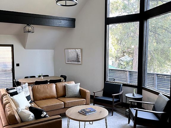 Welcome to your your 3 bed, 2 bath chalet-style cabin nestled into the pines. Large, floor to ceiling windows bring lots of light into the living room, where you can gather around a mid century fireplace. A large deck wraps around the back for BBQs and outdoor dining. A game room with foosball is perfect for winding down the day. We are located less than 10 minutes from Idyllwild and minutes from hiking trails. Disconnect, unwind and enjoy! The Layout: -1 upstairs bedroom with a king bed -1 upstairs en-suite bathroom with bath tub / shower combo -1 main floor bedroom with a queen bed -1 main floor bedroom with a queen bed -1 main floor bathroom with a shower -Open floor plan with connected living room, kitchen, dining and fireplace -Downstairs game room /finished basement with living room, kids area Amenities include: -2 smart TVs -Kitchen items (service for 6), microwave and updated kitchen/stove/fridge -Kids items (pack and play, audio only baby monitor, plates, bowls, cups, booster seat, toys) -Foosball table -Variety of family games -Wood burning Fireplace $2499 a month 6 months, 1 year, 2 year lease options available Start date negotiable 1 month deposit Owner pays for water Renter pays for electric, wifi Renter manages snow removal No smoking, no parties Max 3 cars in the driveway