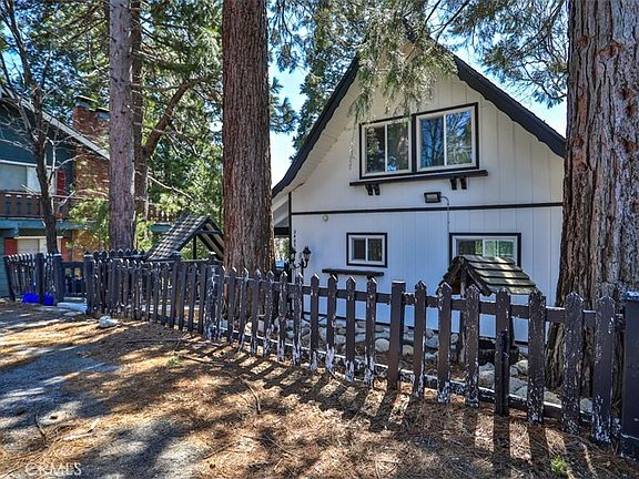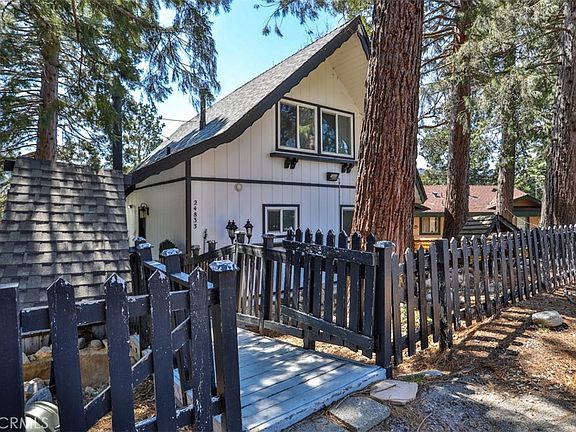 Escape to the serene, alpine beauty of Crestline with this charming A-frame cabin that blends classic architecture and modern comforts. Nestled less than a mile from the picturesque Lake Gregory, adventure awaits with hiking trails like Crestline Canyon, Heart Rock, and Strawberry Peak nearby. Step inside to the soul-inspiring living room with soaring, two-story vaulted ceilings adorned with natural wood and open beams, creating a warm and inviting ambiance. Awash in natural light from two-story windows framing stunning mountain views, the living room offers a perfect retreat to unwind and make memories. Enjoy cooking up a great meal in the upgraded kitchen, featuring granite counters, custom tile backsplash, and pendant lights over the breakfast bar. Central heating, ceiling fans in each bedroom, and dual-pane windows ensure year-round comfort, while the cozy fireplace beckons for relaxing evenings. Fully remodeled with laminate flooring and custom lighting throughout, this retreat is move-in ready. The upstairs loft offers a second, cozier living space with a beautiful view and a cathedral-ceilinged bedroom. Downstairs, you’ll find three additional bedrooms, a fully remodeled bathroom, and the washer and dryer. One of the bedrooms does have a closet and is currently used as a game/storage room. Relish in evergreen, mountain vistas from the wraparound deck, perfect for stargazing or savoring your morning coffee. With Lake Gregory less than a mile away, enjoy fishing, boating, or a leisurely stroll along the scenic trail. Crestline's shops and restaurants are less than two miles away. Looking for a turnkey combination investment and vacation home? This one is already registered for short-term rental (Airbnb/VRBO). The designer furnishings are available for separate purchase, allowing you to effortlessly get started. On top of all that, the electrical panel has been upgraded to 200 amps with load-balancing, and the water heater is new. Don't miss the chance to make memories in this mountain oasis, tucked within the tranquil surroundings of San Bernardino National Forest. Be sure to check out the video and 3D tour, and welcome home!