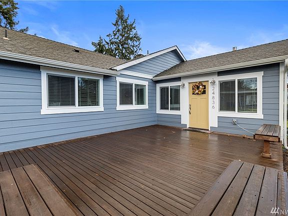 WELCOME to Des Moines and the best kept secret has just hit the Real Estate market! Beautifully & professionally designed & updated, literally top to bottom. This stunning Rambler on a 1/2+ acre lot will WOW the pickiest of buyers! You will absolutely LOVE the Wide open Chefs kitchen/dining/family room concept w/gorgeous rock fireplace! Enormous kitchen island for entertaining. This home offers hardwoods & extensive Mill work. 3 Bedroom, 2 full bath. Amazing master offers 5 pc with over the top tile work. Step outside onto your deck to the highly sought out 30x40 shop w/ an RV entrance & soaring ceilings. This home also has an additional Storage shed & carport. Bring all your toys & enjoy this amazing backyard oasis. This home has no HOA!