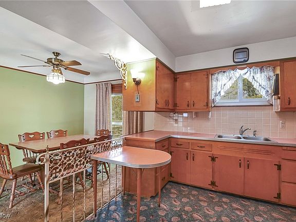 Prepare to be moved! Welcome to this charming 3-bedroom, 1.5-bath home offering 1,120 sq. ft. of inviting living space in the desirable city of North Olmsted. This well-maintained property combines timeless character with modern convenience and plenty of potential to make it your own. Begin your tour in the lovely front yard, surrounded by a lush, well-kept lawn that enhances the home’s welcoming curb appeal. Step inside to a bright and airy living room, filled with natural light streaming through large windows, creating a warm and comfortable space for family and guests. Adjacent to the living room, the dining area showcases a touch of classic 1970s charm, offering the perfect spot for sharing meals and creating memories together. The kitchen features rich wood-toned cabinetry paired with a double-basin stainless steel sink and a matching countertop that doubles as a breakfast bar or extra prep space blending style and functionality. The home offers three generous bedrooms, each designed to provide comfort, privacy, and relaxation for every member of the household. The finished basement expands the living area and is accented with wood paneling and patterned vinyl or linoleum flooring, giving it a charming retro aesthetic. This versatile space is perfect for a game room, home theater, gym, or family lounge, and includes areas for laundry, utilities, and a workshop. A practical setup for everyday living. Step outside to a large backyard, ideal for outdoor entertaining, gardening, or relaxing. With ample space, it offers endless possibilities to create your dream outdoor retreat from a deck or patio to a play area or lush garden. Perfectly situated near major highways, schools, churches, and a variety of shopping and dining options, as well as nearby hospitals for added convenience.