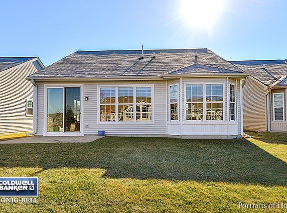 LIGHT, BRIGHT & OH SO VERY NICE! PRIDE OF OWNERSHIP SHINES THROUGH THIS RANCH HOME IN DESIRABLE EDGEWATER OF DEL WEBB CLUBHOUSE COMMUNITY! NICELY UPGRADED OPEN FLOOR PLAN OFFERS NEWER GLEAMING HARDWOOD FLOORS, CUSTOM BLINDS, UPGRADED KITCHEN CABINETS W/MOLDING, BACK SPLASH, NEW SINK & FAUCET, CEILING FANS~WELCOMING FOYER W/MARBLE FLOORING & ATTRACTIVE WHITE CUSTOM MOLDING~ROOMY MASTER SUITE W/BAY WINDOW, FULL BATH W/DUAL VANITY, WALK IN SHOWER & THE HUGE CLOSET WILL IMPRESS YOU! SECOND BEDROOM W/CONVENIENT FULL BATH NEXT DOOR~LARGE LAUNDRY ROOM COMPLETE W/WASHER & DRYER~THEN OUT TO THE EXTENDED GARAGE WITH EXTRA STORAGE SPACE! OVERSIZED SLIDING GLASS DOORS LEADS TO PATIO & PREMIUM LOT BACKING TO WALKING PATH & GARDENS~YOU WILL KEEP BUSY WITH ALL THE AMENITIES OFFERED...FITNESS, TWO POOLS, BILLIARDS, TENNIS & MORE PLUS SNOW REMOVAL & LAWN CARE~THIS ADULT COMMUNITY IS MINUTES TO LOADS OF SHOPPING. HOME HAS BEEN FRESHLY PAINTED & SHOWS LIKE NEW ESPE