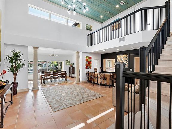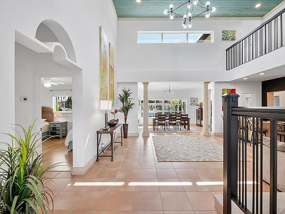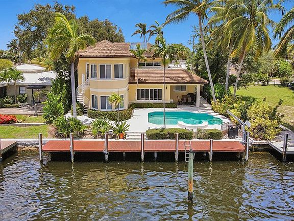 Welcome to Pompano Shores, where luxury living meets waterfront tranquility. Just a short drive from the beach. As you move through the double door entry, you're greeted by an air of sophistication accentuated by high ceilings that lend an expansive feel to the space. The open kitchen seamlessly flows into the family room, creating a perfect setting for both entertaining guests and enjoying cozy family gatherings. Spacious 2-car garage providing ample storage and parking space. The first floor boasts two bedrooms (one en suite) and another full bathroom, offering flexibility and privacy. Venture upstairs to an impressive primary bedroom suite w/wonderful water views. Sparkling pool set against the backdrop of glistening water views. Every day feels like a vacation. Boat Dock available.