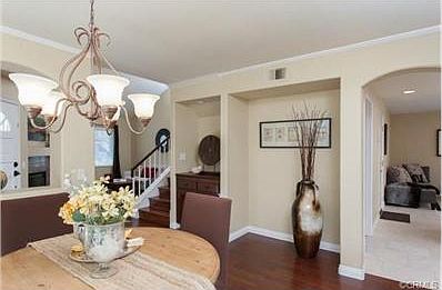 This is a stunning two story, three bedroom home in the prestigious tract of Sterling Niguel. Enjoy this tranquil home with many upgrades: wood flooring, custom cabinetry finish in the kitchen and master bathroom, granite counter tops, recessed lighting, new kitchen appliances and more. True pride of ownership. If you?re looking for a turn-key property, this is it. Conveniently located near major shopping centers, parks, and schools. No Mello Roos, low property taxes, and low HOA dues. Don?t miss this one!