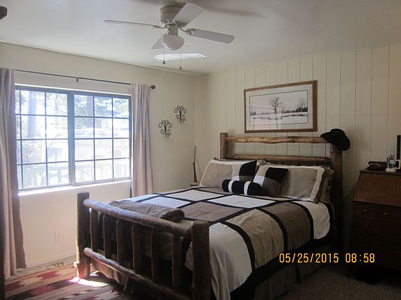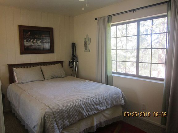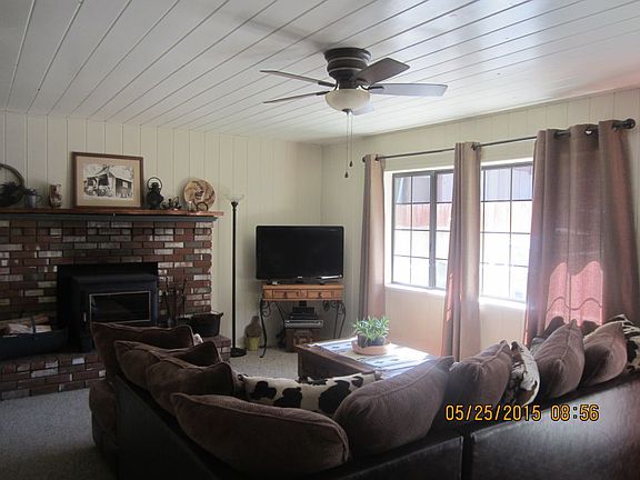 Great mountain home....well maintained move in ready. 2 bedroom, 1 bath, living room has a wood stove, dinning area in kitchen, laundry room, dual pane windows, deck out front and a large deck out back, storage area/workshop below home, large storage shed, RV parking, fenced backyard, Newer carpet, tile, paint, water heater and appliances. Plenty of parking area. This is a must see.