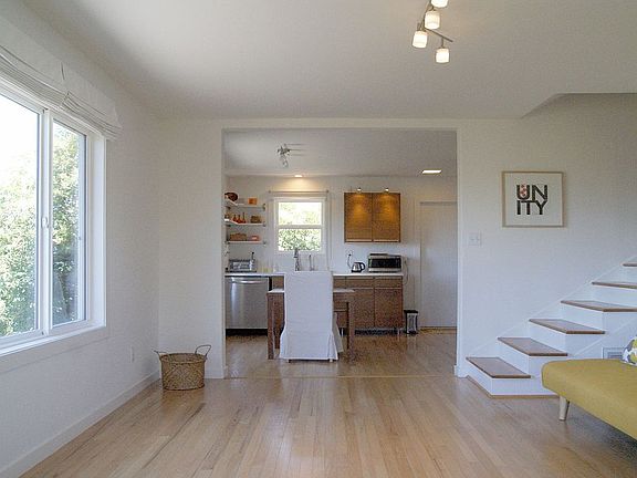 Hayward Hills Tri level bay view 3/1 home in private secluded setting surrounded by trees yet convenient for BART commuters with public transportation within minutes. Mid century modern style touches. Refinished hardwood floors throughout. Double-pane windows, energy efficient furnace, Noritsu tankless water heater with digital remote control for endless supply of hot water, jetted tub, IKEA kitchen with stainless steel appliances, under-the-counter water filtering system, front-loading washer/dryer. Located near CSEB, parks, walking trails,schools and shopping. large and bright finished above ground basement with 8 ft ceiling with large window looking out to mature landscaping can be an in-law unit/income potential. Nearly 30 ft long attic space for ample storage or potential conversion to living space. Water saving automatic 3-zone drip system installed in front and side yards with Bing cherry tree, navel orange, blueberry, rosemary, mints and large lemon tree in the back yard.