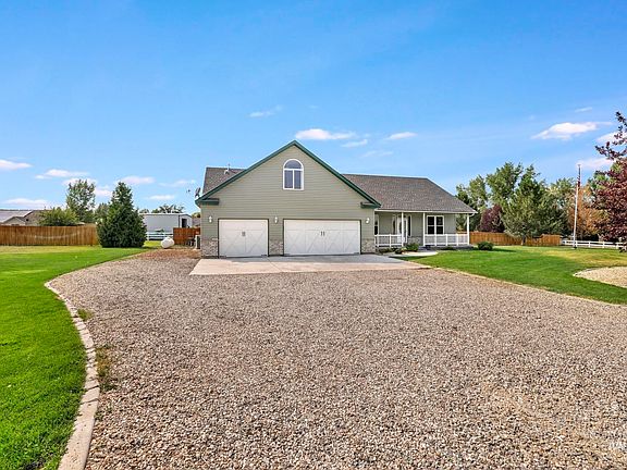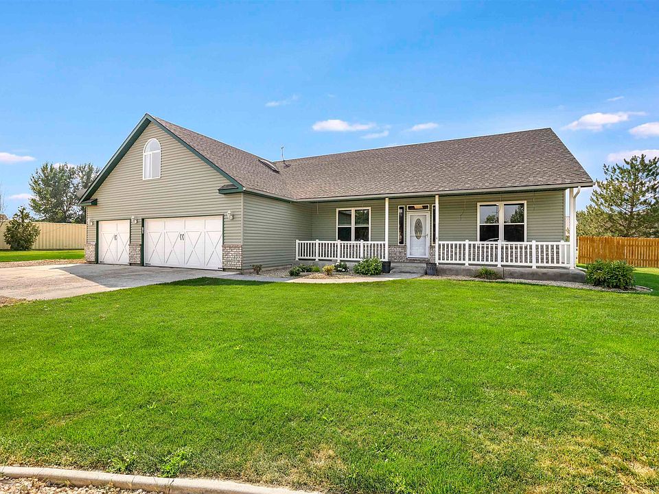 No HOA fees! This beautiful home welcomes you with a spacious great room featuring soaring vaulted ceilings for tons of natural light and a cozy dual-sided fireplace. The kitchen is designed to impress with gas range, matte leathered granite island, hardwood floors, pantry. The primary suite offers spacious dual vanities, jetted tub, walk in closet, fireplace, plus a private entrance to the hot tub. Upstairs you’ll find an additional family room, third bedroom, and full bathroom. On the main level, the flexible 4th room is currently being used as an office with a wet bar, but could also serve as a formal dining room or multi-purpose space. Outdoors, enjoy the covered front porch and back patio with hot tub, low-maintenance landscaping featuring drip lines for hanging pots and flowerbeds. Pre-cut holiday lights available with provider and full rain gutters add convenience. The three car garage has high performance floor coating and storage system