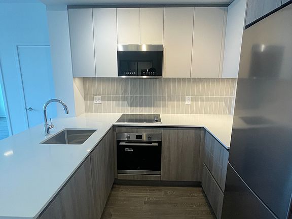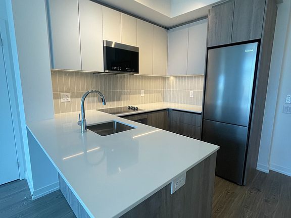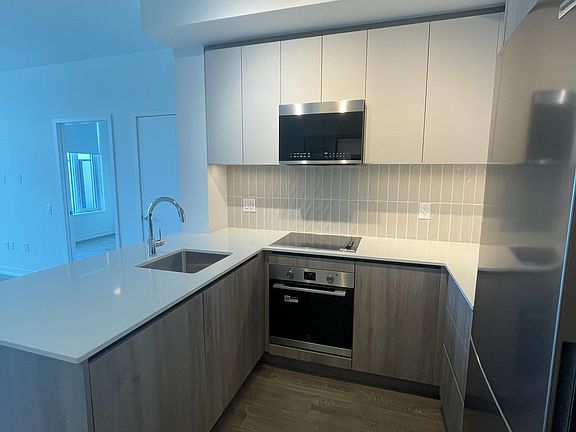 Welcome to this brand new never lived in unit boasting a split bedroom floor plan just under 1,000 square feet. Carpet free, smooth 9 foot ceilings with modern finishes. Open concept kitchen boasts Quartz counters, soft close cabinets, stylish backsplash and large peninsula with convenient breakfast bar open to a Spacious living and dining area - perfect for entertaining. Oversized balcony covers full width of the unit and floor to ceiling windows allow for natural light all day long. The Primary bedroom is a good size with its own private ensuite with glass enclosed walk in shower. No need for a gym membership with these World class amenities: a basketball court, fitness and yoga centre - Entertain in high style in the Party Room or Roof Top Terrace. This building offers so much more and all in the heart of Mississauga, across the road from Erin Mills Town Centre, Credit Valley Hospital and just minutes to Hwy 403.