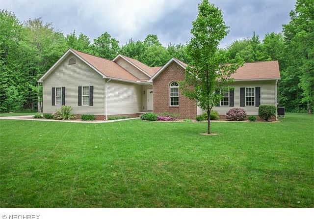 Spacious Ranch on 5 acre setting. This super clean home offers nearly 1900 square feet of living space. Great room features a brick fireplace with a heatilator constitution zero clearance wood burner. Large kitchen and dining room. 3 bedroom and 2 full bath. Master bedroom with full bath. First floor laundry room. 9 foot ceilings throughout. 12 course full basement with wood burner. Central air. This home has generator hook up. Front porch, 2 car attached garage. Absolute Gem!!! Move in ready! To be split from larger parcel.