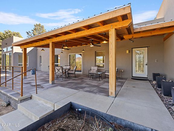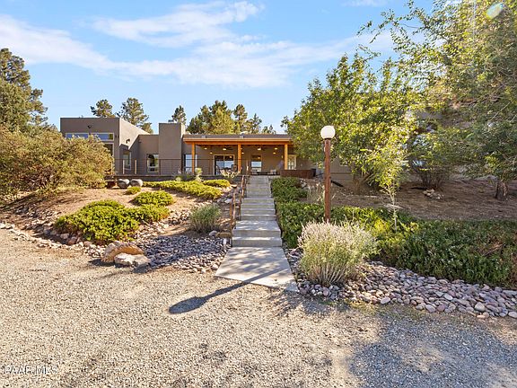 Discover a once-in-a-lifetime opportunity to own a stunning modern home in one of Prescott's most coveted neighborhoods. Nestled at the end of a private paved road, this 2.33-acre estate offers unparalleled privacy and tranquility, yet is just 5 minutes from shopping and 10 minutes from vibrant downtown Prescott.This private oasis, free from HOA restrictions, features a seasonal pond which is a favorite for ducks, blue herons and local deer. The property, bordered by Willow Creek on the north, is surrounded by towering pines with breathtaking mountain views. The spacious single-level home features soaring 14-foot knotty pine ceilings, polished concrete floors, and expansive windows showcasing the serene landscape. The kitchen includes granite countertops, a GE Monogram dishwasher, and a Frigidaire Professional Series 4-burner range with oven. Three fireplaces, including a wood-burning one in the master bedroom, an electric one in the guest suite and an energy efficient propane one in the great room, add cozy comfort, complemented by zoned heating and cooling with dual electric or propane options. An owned solar system ensures low utility bills.A brand-new addition, completed in September 2025, offers a versatile suite with a private entrance, perfect for in-law quarters, a home office, art studio, game room, theater, or whatever your heart desires. The expansive covered patio with lighting and fans is ideal for entertaining. Along with a 3-car garage, the property provides ample room for RV parking. A 200-square-foot storage shed, and a relaxing hot tub just steps from the master suite complete this exceptional property.This horse-friendly estate offers the perfect blend of modern luxury, natural beauty, and endless possibilities. Don't miss your chance to experience the ultimate Prescott lifestyle--schedule your private tour today!