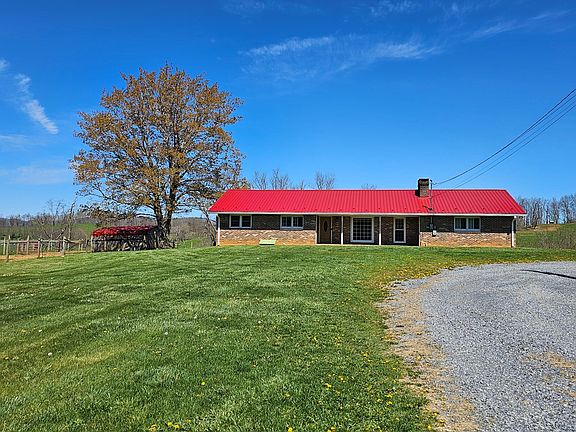 Looking for a mini farm? Work from home? This brick ranch offers a couple of offices accessible from outside. The house has 3 bedrooms and two baths on the first level. A separate Master suite is in the basement. Plus, extra rooms that could be used as bedrooms. The house is situated on 4.84 acres and is partially fenced. Hickory cabinets and pine tongue and groove walls, throughout most of the house, creates a warm cozy country feel.