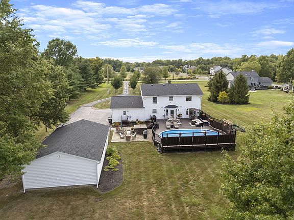 Discover your charming Three bed retreat on 1.86 acres in Olentangy schools. Just minutes to Polaris or Galena. Well appointed kitchen with generous counter space. Three full baths, cozy large family room opens to eat in kitchen and views of sparkling pool, hot and wrap around deck. Large home office/Den, Big Mudroom with door to pool area. Detached six car garage with electricity ideal for home business, studio or workshop. Home has full basement mature trees and paved drive