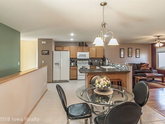 This well kept, beautiful twin home offers just under 1700 finished sq. ft. 3 bedrooms, 2 full baths. New in 2017, roof, siding, garage doors and gutters. Newly updated Formica counter tops, back splash, tile floors in entry, kitchen and dining room along with hardwood floors in living room. New microwave. 2011 new air condition unit. All appliances stay. Seller added nice old barn wood shiplap wall downstairs in living area. Fenced in yard. Nice shed. Water conditioner stays. Highly desired Van Meter School District. No association fees. Move-in-ready!