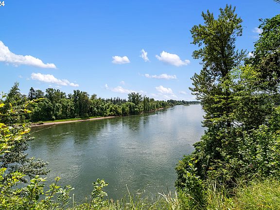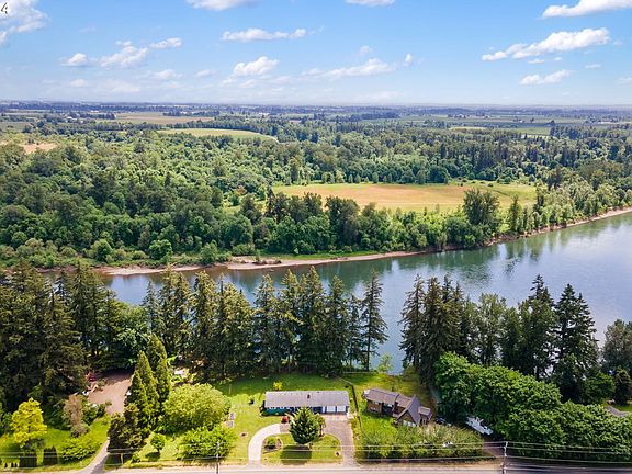 Here's your chance to own a one of a kind home perched on a bluff overlooking the Willamette River. This one level home boasts views from kitchen window and expansive back yard. Watch the sunrise over the Willamette River or sunset over Eola Hills. Wonderful layout with 4 bedrooms and 2 full baths. Lovely living room with built-ins and wood burning fireplace. Thoughtfully updated throughout the years with bamboo floors, slate entry, updated kitchen and a recent 2023 bathroom remodel and heat pump system. Idyllic property where Eagles roost in Doug firs and blue herons frequent the area. . There is a small barn on the property, as well as an orchard with pears,walnuts,cherries, apples, plums, blueberries & raspberries. With over 30 wineries nearby and Mission Park just a short ferry ride across the river, there is never a shortage of activities! No direct access from property to river. Spring Valley Greenway is just down the street which provides river access and trails.