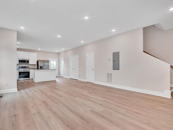 The property boasts an elegant open floor plan with ample space for entertaining. The kitchen is equipped with granite countertops, abundant storage, an island for preparation and serving, and brand-new stainless-steel appliances. The main floor also includes a half bathroom, washer and dryer connections, and a spacious closet for coats or storage. Upstairs, you will find two bedrooms, a full bathroom with a tub/shower combination, and a master suite complete with a walk-in closet. Recessed lighting in the main living areas and ceiling fans in each bedroom enhance the home's comfort.