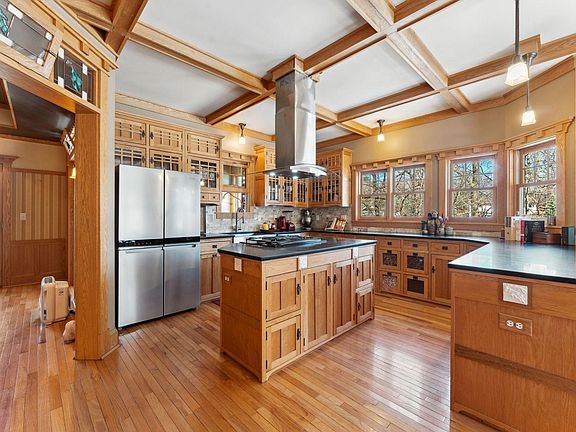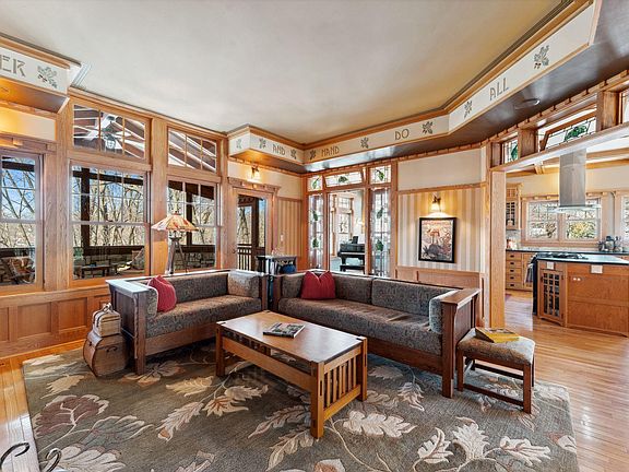 Welcome to Hidden Oaks, a secluded Arts and Crafts suburban retreat nestled in nature, illuminated by light and embodying perfection. Situated on a private 1.4-acre wooded lot in Plymouth, this remarkable property is located within the Wayzata School District and is within walking distance to Medicine Lake. Featured in "American Bungalow Magazine", it was inspired by Sarah Susanka, author of “Not So Big House”. Natural materials are prominently featured, including real hardwoods throughout, intricate detailing and millwork, built-ins, stained glass, beamed ceilings, wainscoting, and a stone-faced wood-burning fireplace, all characteristic elements of a true Arts and Crafts home.