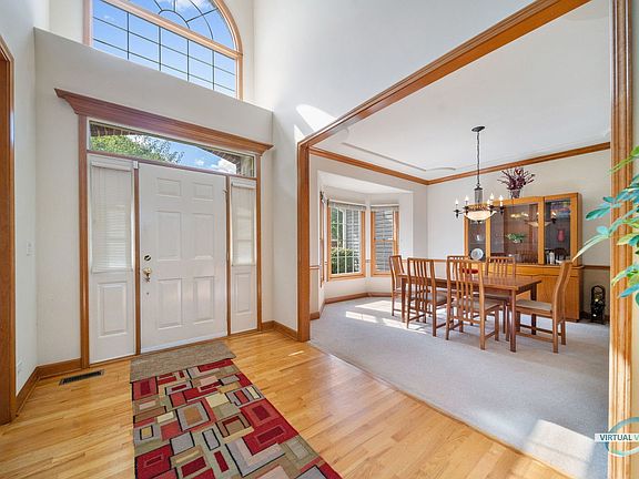 You will love the tall ceilings with palladium windows plus open floorplan in this 3100 sq ft home! This outstanding red brick home is located in the sought after Summit Chase East of Wheatlands subdivision with award winning schools! As you enter the welcoming 2 story foyer with hardwood floors, you'll notice the formal living room and dining room on either side. Then you'll see the huge family room with custom stone fireplace and vaulted ceilings, a cooks kitchen featuring hardwood floors, a breakfast nook that opens to the deck, 9 foot ceilings and 42" cabinets, tons of storage and huge island that has additional shelving space, storage and a breakfast bar! The kitchen opens to the large laundry room, that has doors to the oversized garage (a true 2.5 car!) and to the Trex deck (with doggie door). There is also a den/office (currently being used as a bedroom) and half bath on the first floor. The second floor features a loft with an outstanding area that overlooks onto the family room and foyer. 4 bedrooms, 2.5 baths plus beautiful woodwork! There are 2 large bedrooms and full bath with skylight on one end and the 4th bedroom plus the Master Suite on the other. The Master Suite has vaulted ceilings and a reading nook, plus the huge master bath with a whirlpool tub, stand alone shower, and large walk in closet! There is also a full unfinished deep pour basement partially insulated, waiting for your finishing touches! This home is located on a cul-de-sac, and is close to the park, close to award winning Oswego 308 schools and has a fenced yard! Sellers love their home!
