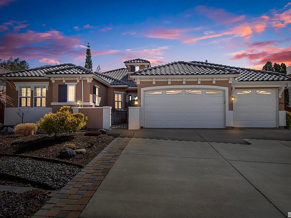 This immaculate single-story home in the peaceful Evans Ridge Estates neighborhood is sure to impress. A charming courtyard entrance welcomes you to this 2,440 sq ft residence, which features 3 bedrooms, an office, 2.5 baths, and a 3-car garage. The home boasts exceptional curb appeal, a gorgeous interior, and a sheltered private backyard with a built-in barbeque and inviting sitting areas. This home is a true gem, conveniently located close to shopping, freeway access, and the airport., Step through the front door into a spacious living room with a soaring 20-foot ceiling and expansive windows that fill the space with natural light. Enjoy winter nights with the beautiful gas log fireplace in the family room located off the kitchen area. The kitchen, remodeled in December 2024, features custom cherry cabinets, a new sink, quartzite countertops, a matching backsplash, and Bosch appliances. This gourmet kitchen offers ample counter space, a pantry, a 5-burner gas stovetop, a double oven, an island, and a breakfast bar. New tile flooring graces the kitchen and hallway, while luxury vinyl plank flooring has been installed in the bedrooms, living room, dining room, and family room. The owner has meticulously maintained the property and has installed a new water heater, newer Trane HVAC and humidifier, and newer washer and dryer. The front yard was xeriscaped in 2017. This is certainly a must see home.