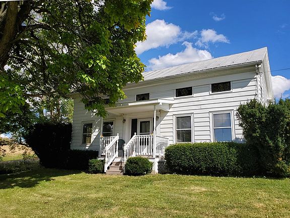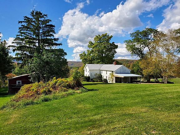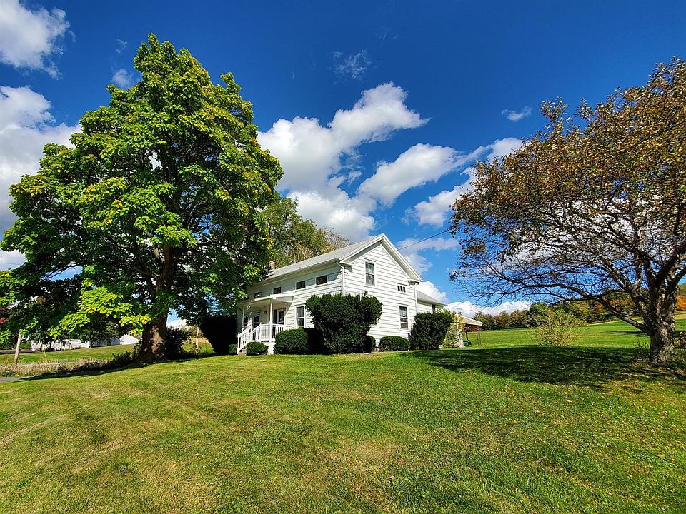 Come home to the Catalpa House near Cobleskill! This idyllic farmhouse is bright and inviting with a thoughtfully refreshed interior and classic farmhouse character. The 3 bedroom, 1 bath home is situated on a 1.0 acre lot with backyard views of rolling farm hills and front facing views of the Cobleskill Creek valley. Tucked below the soaring catalpa tree, The front of the house features eyebrow second floor windows and a welcoming front porch. The paved driveway leads to the informal daily entry with an attached carport and an unfinished 2 story space that currently serves as a storage/mudroom area. A large laundry room with plenty of cupboard space leads into the eat-in kitchen with a side door out to a potential patio area. A pass-through office/craft room leads to the spacious and bright living room and dining room with stately windows and door moldings. The new wood laminate flooring and carpeting bring a modern freshness to the space. The one bathroom is located off the dining room. The upstairs, with original hardwood floors throughout, has three bedrooms, and two other bonus rooms that are unfinished and are a blank slate for a possible second floor bath or primary bedroom space. The 1 acre lot has a fantastic old workshop shed and a diversity of vegetation, including; grape vines, lilac bushes, tiger lillies, and birch and locust trees. Located just 2 miles to the activities and amenities of Cobleskill, with I-88 access around the corner, this home is just 45 minutes to Albany, 35 to Oneonta, and 2:45 to the GWB.