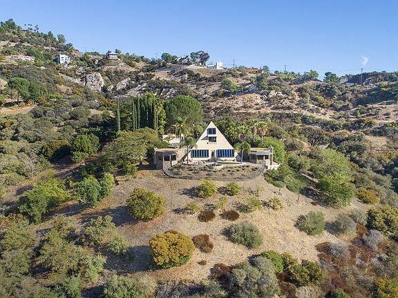 Imagine...breathe...create. A unique opportunity awaits. The chance to acquire a Pyramid. Vibrating at the highest level atop Saddle Peak w/ infinite views of the sea, sky, city lights and canyons below. This iconic Property seamlessly blends spiritual elements with modern luxury and style. From the moment you enter thru the front door adorned w/sacred geometry you feel a deep sense of serenity and calm. A Ley Line intersects the inner great room which is filled w/ abundant natural light, high ceilings, stone floors and an inlaid Analemma solar calendar. There is a gourmet kitchen w/ granite counter tops and stainless steel appliances, a second story master w/ walk-in closet, private terrace and stunning views, two comfortable guest suites, a den and study w/ cozy fireplace, plus detached garage and large storage shed. All set on 2.4 magical acres w/ fruit orchards, vegetable gardens and natural beauty everywhere you look. The perfect place for enlightened and creative souls to thrive.