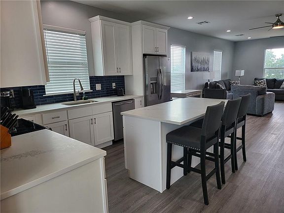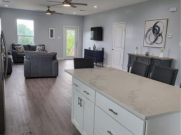 Walkway to the dockTile tub enclosuresStainless steel appliancesGranite countertopsCeramic tile
