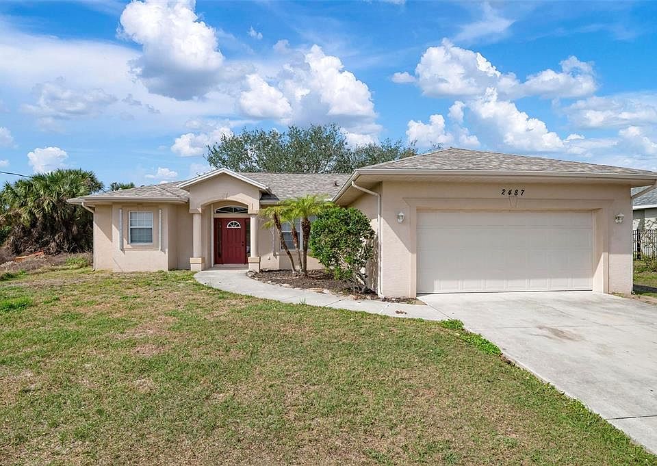 One or more photo(s) has been virtually staged. New AC 2025! New roof 2024! Buyers, enjoy the opportunity to own a 3 bedroom, 2 bathroom, 2 car garage home in a great location in North Port. Whether you are looking for an investment property or just starting out this home awaits you! With this split floor plan layout, the owners and their children and/or guests can enjoy their own space. The kitchen anchors the home and has stainless steel appliances, a cute breakfast bar, a dinette area, sliders to the lanai and opens to the family room. The family room/living room combination is open and bright and sliders also allow access to the lanai. The primary bedroom has a large walk-in closet, more sliders to the lanai and has an en-suite. The interior is finished with neutral colors, tile and laminate flooring so there is no carpet to be found! A large backyard is awaiting your touches whether it is fencing to keep your pets in or a pool! Hurricane protection is offered for all doors and windows. This central location allows access to I75 and US41 to get you North or South easily, depending on your destination. Shopping, dining and fun are possible in all directions! Come and make this yours today!