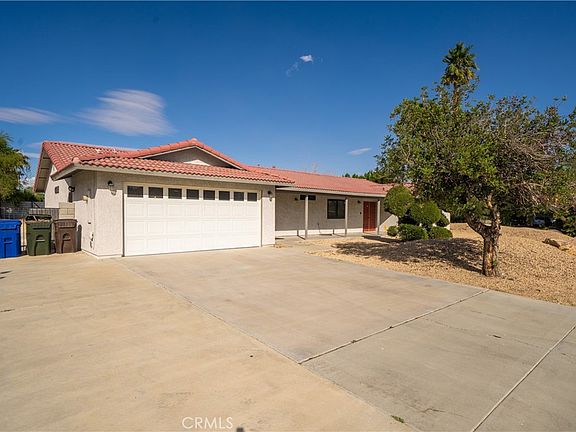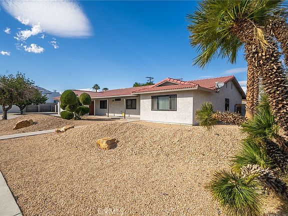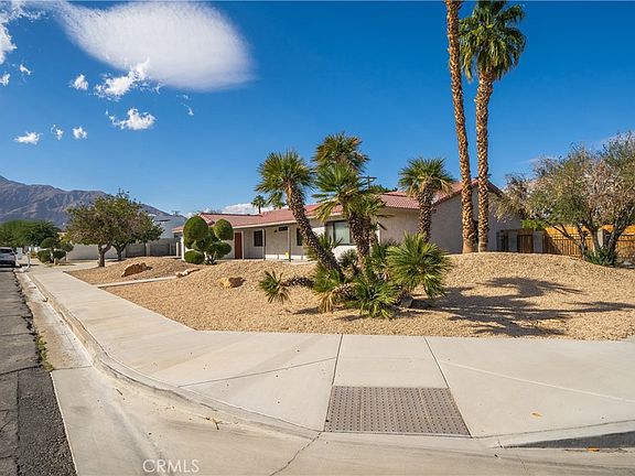This is a GEM in the Gorgeous North Palm Springs area. As you enter the Double French doors notice the high ceilings and space, your imagination is endless in the opportunities this home will have for you and your loved ones. Aww, the Stacked Stoned fireplace is an eye opener and is adjacent to the remodeled Kitchen with Bamboo cabinets and self-closing drawers. You will fall in love with the size of this home & spacious lot, add a pool and a jacuzzi, at this price you can afford to do so and raise your value tremendously. This is Priced to sell. This 4 Bedroom, 3-bathroom home boasts 2379 sq. ft. of living space and the lot is one of the largest on the market today at an incredible price. THIS Home will not last. 2 Master bedrooms that have their individual restrooms. All bedrooms are spacious, and all have mirrored sliding closet doors. Ceiling fans. The bedrooms are all large. Enjoy the Mountain Views from your backyard during those family barbecues or home away from home relaxation days. This home has been recently painted inside. Move in ready. The home has Exterior lights, Kitchen stainless steel appliances, Granite countertops, Stainless steel sink. Updated Vanities in 3 bathrooms. The windows in the home are custom to keep the home quiet and relaxing & include Window blinds throughout home. The Water heater is new. The 5 Ton Air Conditioning unit is new & works perfect. There is a 2 car garage and plenty of parking space in the driveway and has RV parking. Great for Family home, investment, or vacation rental. No HOA on this home.