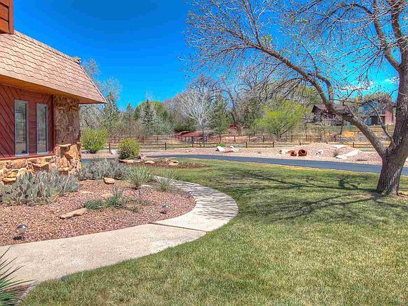 Dramatic custom built house, with attention to detail & quality. Lots of rock work in and out. Room to build shops or more garages. Huge rooms and a great floor plan with living room down and family room up. Decks for views in all directions including 24 x 24 deck facing North and private deck off Master bedroom. Recent updates. Lots of RV Parking - 3 car 40x26 detached garage. Borders Park. NO HOA! Located directly behind the lovely subdivision of Fountain Greens, but this beautiful custom home is not part of their HOA. Includes 2 fireplaces, new kitchen floor & counters, bathroom remodeled. Access looks like you drive through the neighborhood park - you do! All info subject to change/error. Buyer to verify all info.
