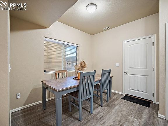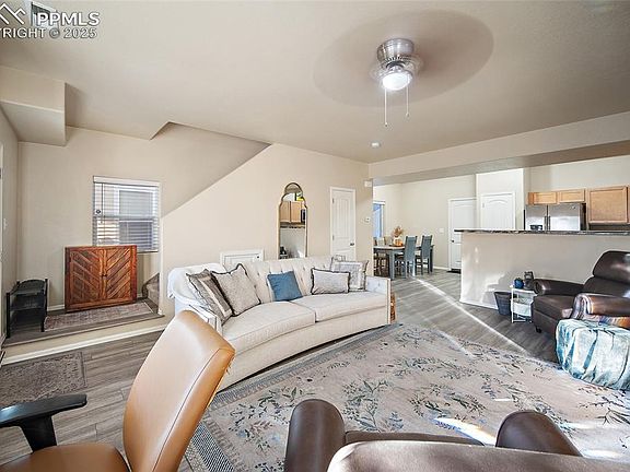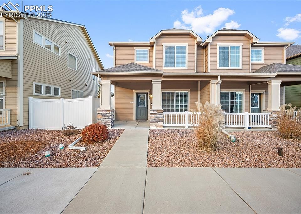 Discover effortless modern living at, a stunning, newer-construction townhome (built 2016) delivering exceptional convenience and picturesque MOUNTAIN VIEWS! This pristine 3-bedroom, 3-bathroom paired home offers a functional, stylish design, starting with an inviting open-concept main level. The light-filled living area flows into a beautiful kitchen equipped with stainless steel appliances, a generous breakfast bar, and durable, chic luxury vinyl flooring (LVP), complemented by a main-level powder room perfect for guests. Upstairs, functionality meets comfort: all three spacious bedrooms are located here, including the private Primary Suite—your personal retreat—complete with a large walk-in closet and luxurious en-suite bathroom. The highly sought-after upper-level laundry room makes daily chores simple. Additional features include an attached 2-car garage and efficient Central Air Conditioning. Enjoy an unbeatable central location, providing rapid access to I-25, Fort Carson, Peterson SFB, and Schriever SFB. This move-in-ready property represents a quality, modern lifestyle in a vibrant Colorado Springs community. Schedule your showing today and experience the difference!