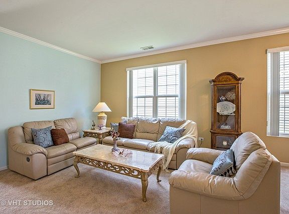 **MOTIVATED SELLER! $10,000 Reduction!**Enjoy living in Edgewater by Del Webb, an Active Adult Community where one resident must be 55 yrs.of age* Upgraded "Belmont" model with Granite counters, 42" cabinets, backsplash, and even a Reverse Osmosis Water System.*There is a new Hot Water Heater 11/16*Country Kitchen with Family Room. Premium location with conservation area with walking path behind. This model has a family room off the kitchen and also a Den. Spacious Living Room and Dining Room. Bay Window in the Master Bedroom. Attached televisions will stay in Family room and Master Bedroom. Extended concrete patio also. Quick possession possible! No more grass mowing or snow shoveling. Gated Community with 24/7 Guard. Enjoy Creekside Lodge with indoor and outdoor pools, hot tub, billiards, and enjoy all the activities!