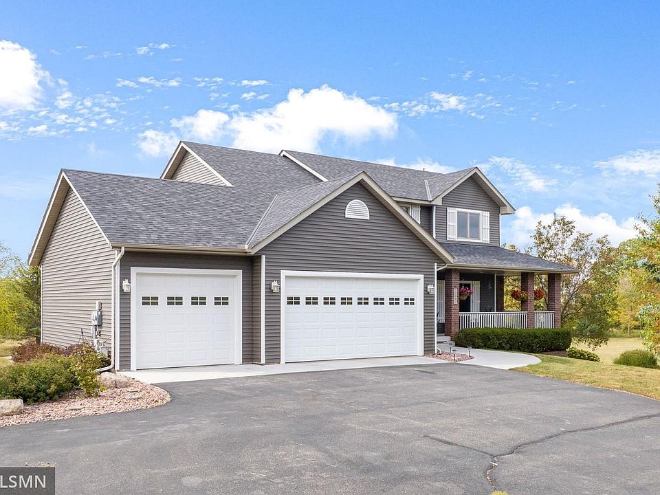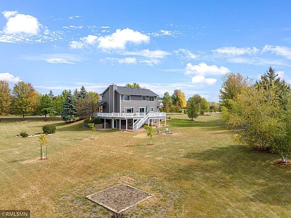 Your acreage oasis awaits! With over three acres of stunning, sprawling land in District 194, this type of property does not come on the market often. Meticulously maintained, this two-story gem features a gorgeous wrap around porch/deck, a walkout patio, a built-in firepit, fantastic curb appeal, a heated garage, and enough green space for whatever your heart desires. Inside, five bedrooms accommodate households of many sizes, as well as spacious living areas and storage throughout! Numerous recent upgrades include a new well pump, newer furnace and A/C, and a newer roof. Enjoy your peace and quiet while staying close by to nearby Lakeville, Elko, or the rest of the south Metro via nearby I35. Pride of ownership from top to bottom, see our Matterport 3D virtual tour for more!