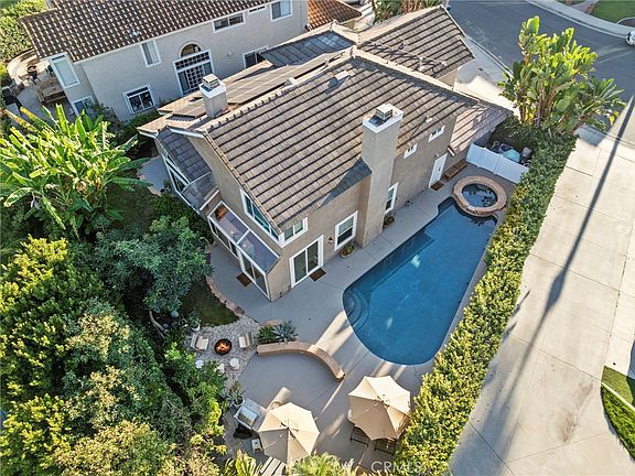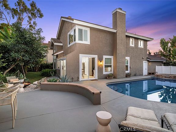 Welcome home to 24882 Avenida Avalon, located in the heart of Laguna Hills- a rare opportunity to own a beautiful, turn-key residence in one of the area’s most desirable neighborhoods. (OWNED) Solar Panels & New Roof added in 2019! Nestled on a serene cul-de-sac for quiet privacy, this home blends modern luxury with timeless comfort in approximately 2,600 square feet, set on a lot over 6,000 square feet. The dramatic, wood spiral staircase greets you; complementing the formal living & dining spaces~ flowing into open family room, creating a perfect canvas for entertaining. Soaring ceilings & tall windows flood the interior w/ natural light. Generous layout w/ 4 bedrooms, including a main-level bedroom w/ En-suite~ ideal for guests or multi-generational living; 3 full bathrooms with stylish finishes. A chef’s dream kitchen is outfitted w/ high-end appliances, premium countertops, oversized island, abundant cabinetry, and a cozy breakfast nook or coffee bar. Revel in the huge custom walk-in pantry. Upstairs, enjoy the spacious & serene primary suite, w/ large windows, walk-in closet, & a spa-like En-suite designed w/ luxury in mind. Throughout the home, expect designer touches— wood flooring, upgraded fixtures, modern lighting, and excellent closet/storage capacity. Landscaped front yard with lush lawn and welcoming entry w/ gorgeous stone walkway & double door entry. Backyard designed for both relaxation & gatherings- generous outdoor living space to include pool Resurfaced, Pebble finish & deck paint, updated waterline tile in 2021 & spa & elegant firepit area, ideal for entertaining or enjoying SoCal weather. Attached 3-car garage w/ direct access provides plenty of parking for all. Re-piped in approx. 2018-2019. Just a few steps to Beckenham Park. No HOA / No Mello Roos. Very low tax rate. Ideally located in Saddleback Valley Unified School District; easy access to local elementary, middle, & high schools. Close to shopping, dining, parks, & freeways for easy commuting. A short drive to the Irvine Spectrum, Laguna Beach, & outdoor recreation. Move-in Ready! This beautiful & thoughtfully maintained home is just waiting for you.