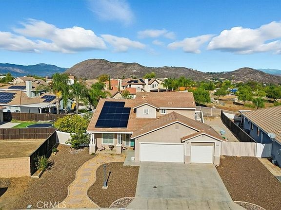 Come see your beautifully updated home in The Farm community of Wildomar! Nestled on a spacious lot with no rear neighbors, this property offers stunning, unobstructed views of Menifee's city lights, the snow-capped mountains of Big Bear, and the peaceful open space behind. The expansive backyard features a covered patio with recessed lighting and a ceiling fan, a tranquil koi pond, space for a future pool, and on-site RV parking. Inside, you'll find 4 spacious bedrooms and 3 full bathrooms, including a custom remodeled master ensuite with a relaxing retreat. The open loft: upstairs has its own private access, full bathroom, and walk-in closet - perfect for guests or potential rental income. Additional highlights include a low-maintenance, drought-tolerant yard, PAID solar, attic fan, and a low HOA of only $78/month. The Farm community offers incredible amenities such as three pools, Jacuzzis, basketball and tennis courts, beach volleyball, two dog parks, fishing ponds, a baseball field, event center, citrus groves, walking trails, community garden, and affordable resident-only RV parking.