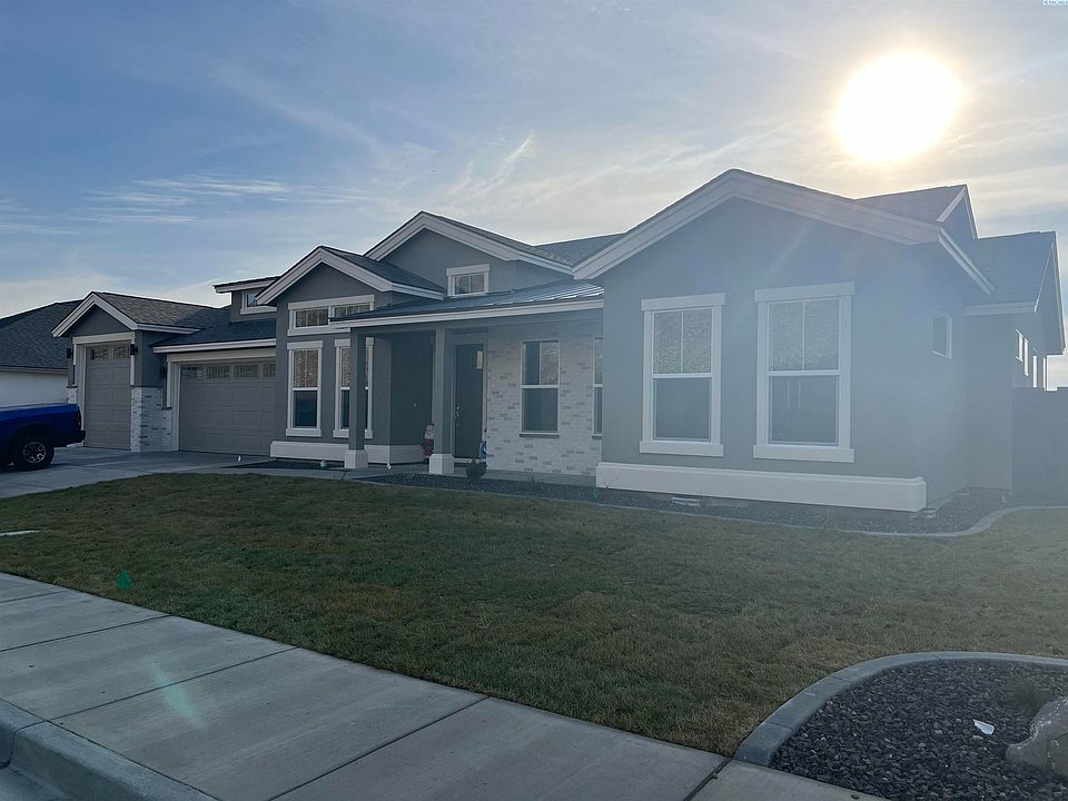 MLS# 270788 Welcome home to the Brennan plan. This spacious rambler is sure to captivate you from the moment you enter through the magnificent 8ft front door into the remarkable foyer. No detail was missed.... soaring ceilings enhance the beauty of this well-crafted floorplan. Dining room-offering built in hutch perfect for entertaining and opens to the great room with a vast number of wood wrapped windows thoughtfully placed to capture the breathtaking views. Custom built-ins surround the fireplace in the great room and opens to a chef inspired kitchen with quartz counter tops, stainless-steel KitchenAid appliances, LED under cabinet accent lighting, and a large walk-through pantry with window for natural light. Step outside and find the perfect place to enjoy the warm summer evenings as you enter an elegant outdoor living space with an expansive patio, all while you encompass the enchanting views of the Tri Cities! Separate from the rest of the house is a haven all of its own, the master suite, featuring coffered ceilings, free standing tub, walk in tile shower. Enjoy an expansive 3 car garage with oversized 3rd bay equipped with 10ft garage door.