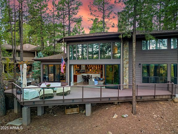 Home owner / listing agent is a licensed Real Estate Agent in Arizona. This completely remodeled home (2018) is located on one of the most spectacular view lots in all of Forest Highlands! The expansive back deck with glass railing offers views of the 14th hole and the 13th green of the renowned Forest Highlands Canyon Golf Course. Views of the SF Peaks can be seen above the tree tops. 20' of glass doors were installed so you can enjoy the view from inside the house. Central air conditioning was installed (2018). Beautiful kitchen with all Thermador appliances. Home owner is the listing agent. Primary Bedroom downstairs, 2 bedrooms upstairs. Bed 2 has full bath with tub / shower. 3rd bed has bath with walk in shower.