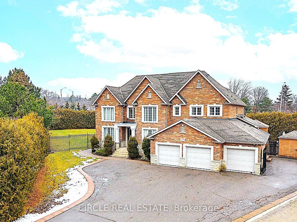 Indulge in luxury and sophistication with this custom-built estate offering over 7,000 sq. ft. of elegant living space on an almost half-acre premium lot in Mississauga's coveted Erindale community. Perfectly located near Trillium Hospital, Square One, top-rated schools, and just minutes from QEW and Hwy 403, this residence blends timeless craftsmanship with modern comfort.From the moment you arrive, the grand façade, 3-car garage, and 12-car driveway make a statement of prestige. Step inside to discover 22-ft open-to-above ceilings, custom cast-iron railings, and rich cherry hardwood floors that create an atmosphere of refined elegance.The designer chef's kitchen serves as the home's centerpiece, showcasing dual center islands, built-in stainless-steel appliances, granite countertops, and a sunlit breakfast nook overlooking the private backyard. The adjoining two-storey family room is drenched in natural light through floor-to-ceiling windows and anchored by a stately fireplace with custom built-ins - perfect for family gatherings and entertaining.The main-floor primary suite is a true retreat with a fireplace, spa-inspired 5-piece ensuite, expansive walk-in closet, and private home office access. Upstairs, three king-sized bedrooms, each with walk-in closets and ensuite access, surround a custom study loft with built-in cabinetry.The fully finished lower level features a 3-bedroom, 2-bath apartment with a separate entrance, modern kitchen, pot lights, theatre room, mirrored gym, and recreation area-ideal for multi-generational living or rental income.Step outside to your private oasis featuring an inground pool, party-sized deck, and lush, mature landscaping-perfect for entertaining or quiet relaxation.A masterpiece of luxury, comfort, and functionality, this home redefines executive living in one of Mississauga's most prestigious enclaves.