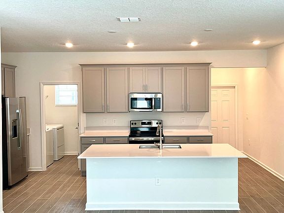 Welcome to this newly built 3 Bedroom, 2.5 Bath home in Kissimmee, FL! This two-story home boasts an open kitchen with new cabinetry, stainless steel appliances, and a kitchen island, perfect for entertaining. The bedrooms are carpeted for comfort and feature walk-in closets for ample storage. The house also includes a convenient inside laundry room with a washer/dryer included. The exterior of the home is just as impressive with a covered front porch, paved brick driveway, and a rear detached 2-car garage. The paved patio area is perfect for outdoor relaxation. As part of a resort-style community, residents have access to a host of amenities including a tennis court, community pool with lounge chairs, kids splash pad area, dog park, and community playground. For fitness enthusiasts, the community fitness center is a great place to stay active. The community clubhouse is a great place to socialize and meet neighbors. With updated home features, and a host of community amenities, this home offers a blend of comfort and convenience.