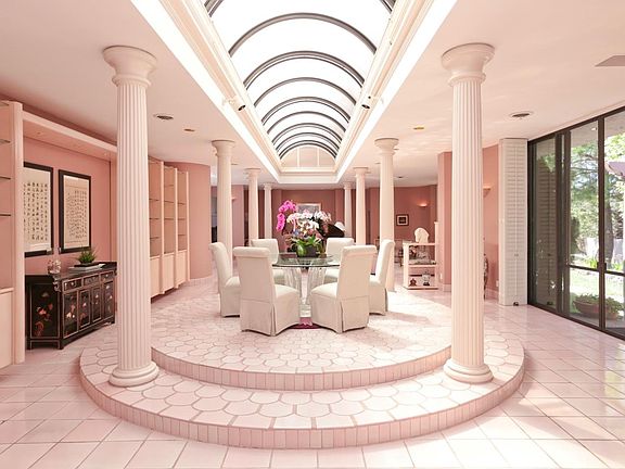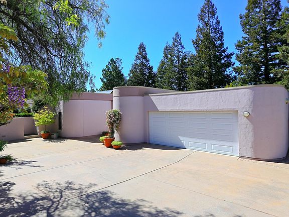 This dramatic modern home with ~5,794 SF of living space is glamorous, open, and inviting. This spectacular property will meet the needs of many. The main home offers ~4,210 SF with 3 bedrooms and 3 bathrooms, all en suite, and a well-lit guest house, which doubles as a recreation pavilion, provides additional living space of ~1,584 SF with 2 spacious bedrooms, 2 bathrooms and a full kitchen with stainless steel appliances. Curved walls of glass block in both the main residence and guest house showcase modern architectural flair, a lounge-style theatre provides for movie nights at home, and the kitchen stands ready for even the most demanding chef. A pool, private hot tub, sport court, and complete golf practice area add the finishing touch on this private ~1.3 acres just over one mile to the Village. Top rated Los Altos schools.