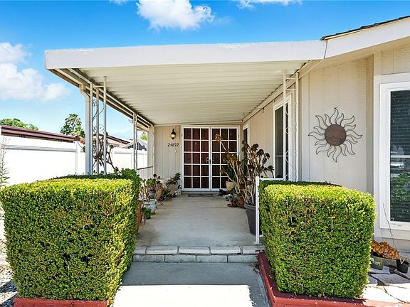 Welcome home to 24892 Rosebrugh Lane! This beautiful Silvercrest built manufactured home offers quality living at a great price. Located in a quiet pocket of East Hemet with quick access to Florida Avenue and Ramona Expressway ideal for commuters. This extra spacious home offers quality construction of 2x6 walls, a 433 "permanent" foundation, drywall interior and dual pane vinyl windows. A major highlight is the detached two car garage PLUS covered parking for a total of 3 spaces, and a large enclosed workshop. The inside features three bedrooms plus a den that could be used as a 4th bedroom or office space and offers so much storage. Down the side you have a nice concrete driveway that could be used for RV parking and there are hookups to stay plugged in or host RV guests. The huge kitchen offers lots of storage, granite countertops and a walk in secondary area that could be used as a mudroom or pantry area. The master bedroom offers a large living area, en suite bath, walk in closet and enclosed patio room area for retreat or storage. There are two water heaters on the property and the HVAC is oversized for the home and late model. With a low tax rate, no HOA and no solar liens to assume this is an affordable home for all! Schedule your showing today!