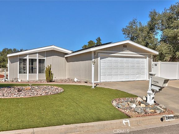 Looking for the perfect home? Welcome to 24896 Deep Well Rd. This fantastic property is located on a corner lot with no neighbors to the back or to the side. Solar is Paid for!! The property has RV parking, a large lot and room for a pool or even an ADU. This property boasts 1800 sq ft. Three bedrooms and two baths, with an indoor laundry room. The home has been recently updated and is turnkey. New heating and cooling system, newer roof and lighting throughout the entire interior of the home. The kitchen has updated marble countertops, newer appliances, and even a walk-in pantry. The living room is large in size and is open to the kitchen area. The bathrooms have been completely remodeled with new tile in both showers, new toilets, new sink, new vanities and tile flooring. There is newer tile flooring in the living room, primary bedroom, and all the bathrooms. There is newer carpet in the two secondary bedrooms and the family room. The family room is large in size, giving you plenty of room for entertaining. This is a perfect property, if youre looking for privacy and a great backyard. Close to the freeway shopping and the Temecula wineries. Don't miss out on this unique property.